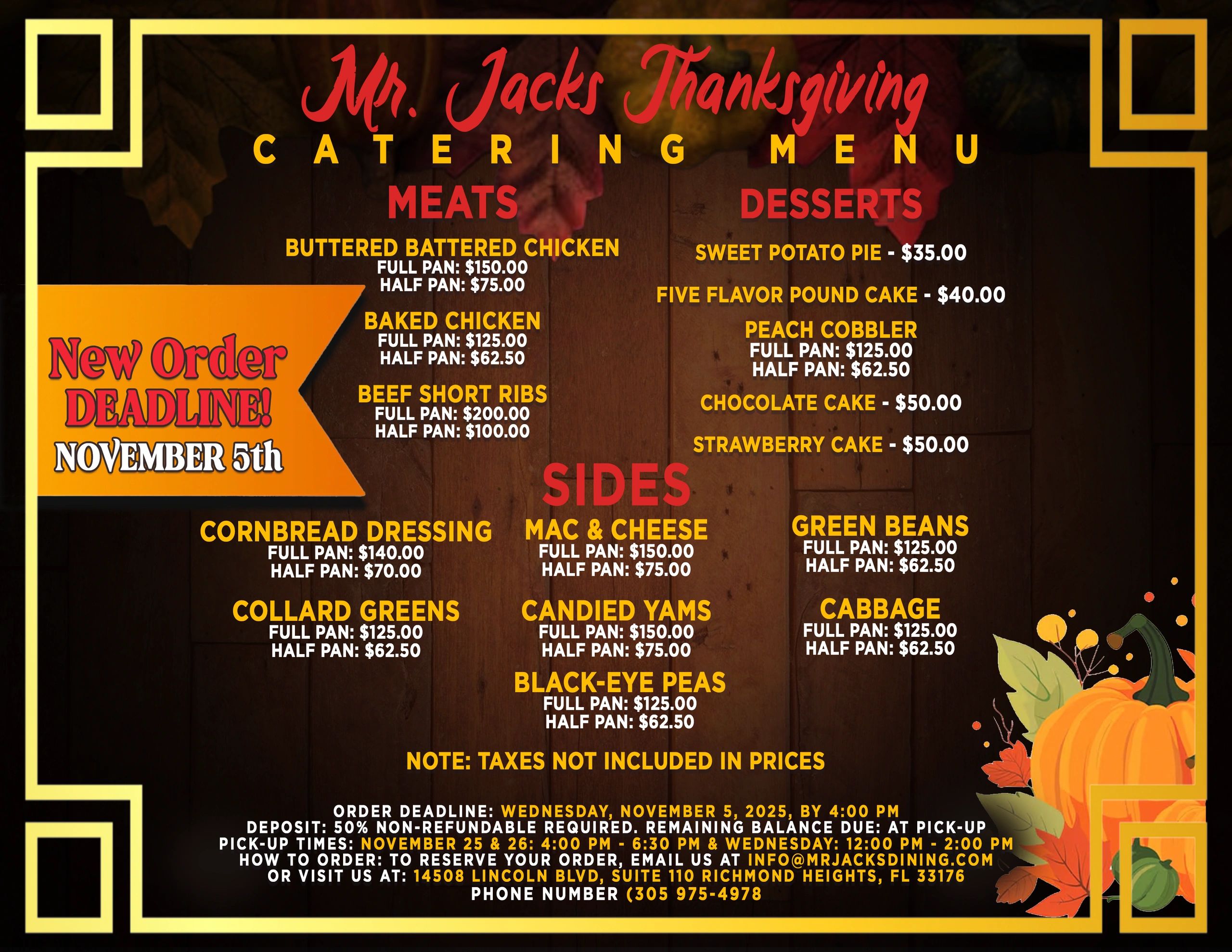 Be sure to follow us on Instagram and Facebook to stay up to date on all things Mr. Jack's! You can also subscribe to our newsletter to stay in the loop about weekly specials and more. We can't wait for you to taste the soul food we've been cooking up.